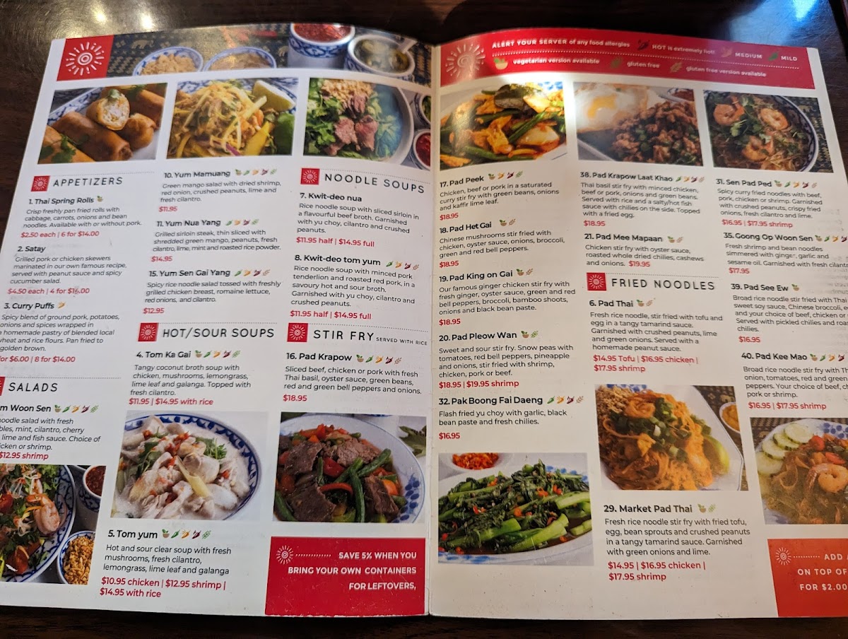 The menu features a delightful array of dishes that promise to tantalize your taste buds. From the generously sized spring rolls to the flavorful Sen Pad Ped, each plate is prepared with care, showcasing fresh ingredients and meticulous cooking. Notably, the Pad Thai has garnered rave reviews for its perfect balance of flavors, making it a favorite among diners.