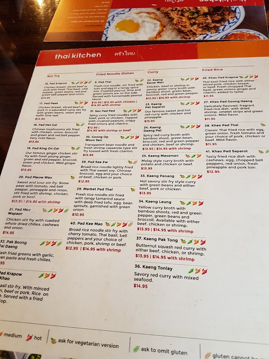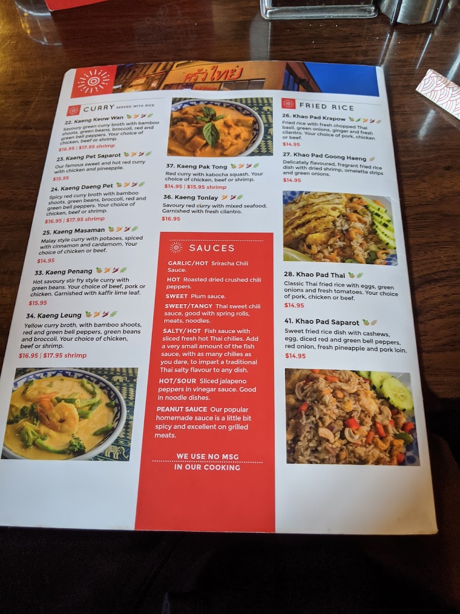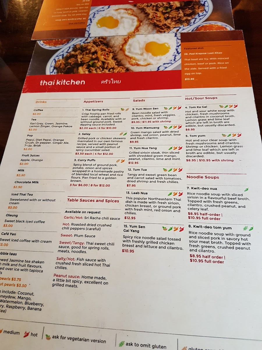 Thai Kitchen Restaurant - Thunder Bay Menu